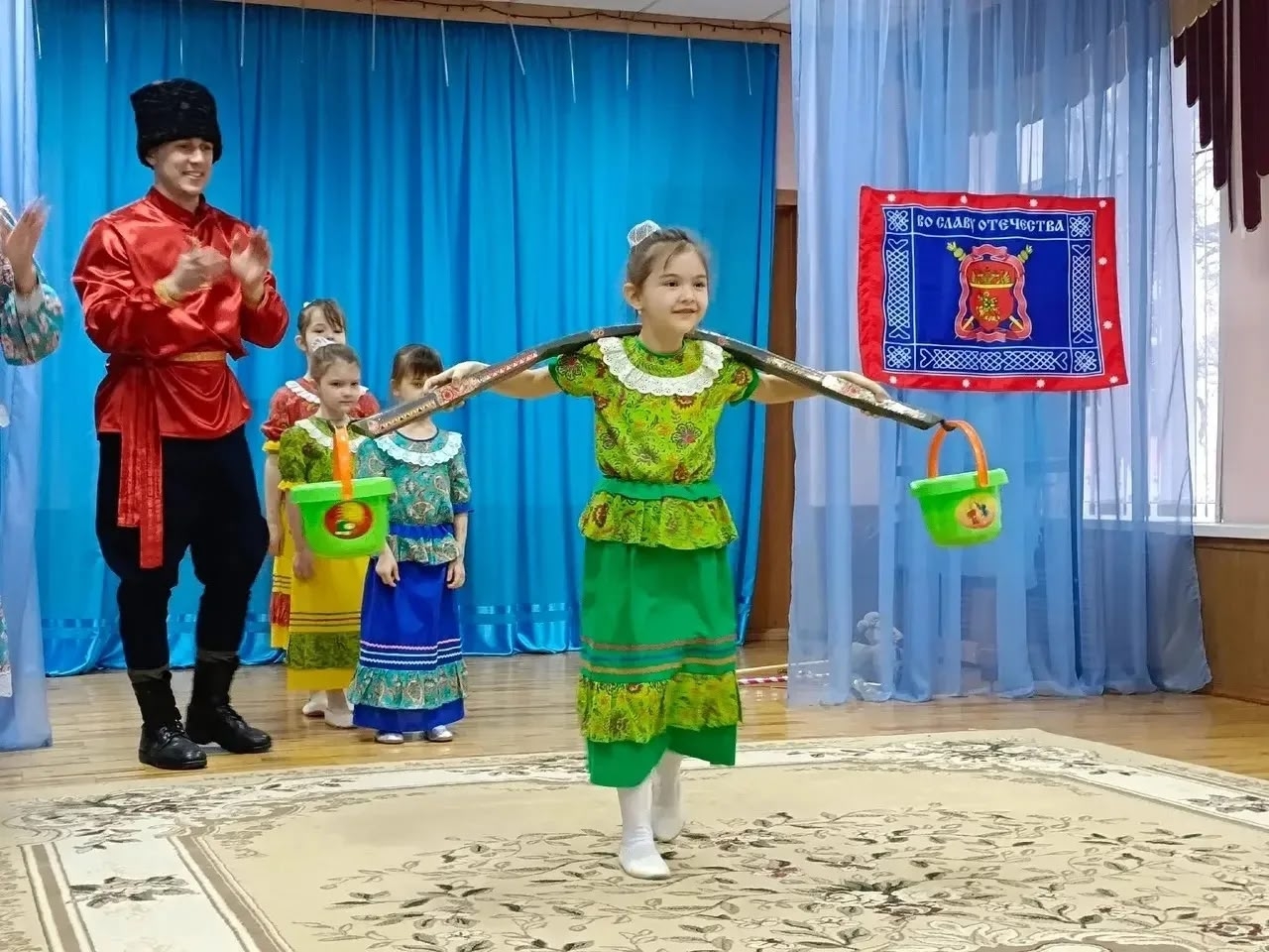 Юные участники продемонстрировали силу духа и ловкость, соревнуясь в традиционном перетягивании каната. Мальчишки проявляли смелость и мастерство, участвуя в захватывающих скачках на лошадях, демонстрируя исконные казачьи умения. Девочки же показали свою грациозность и выдержку, перенося воду в традиционных русских коромыслах.