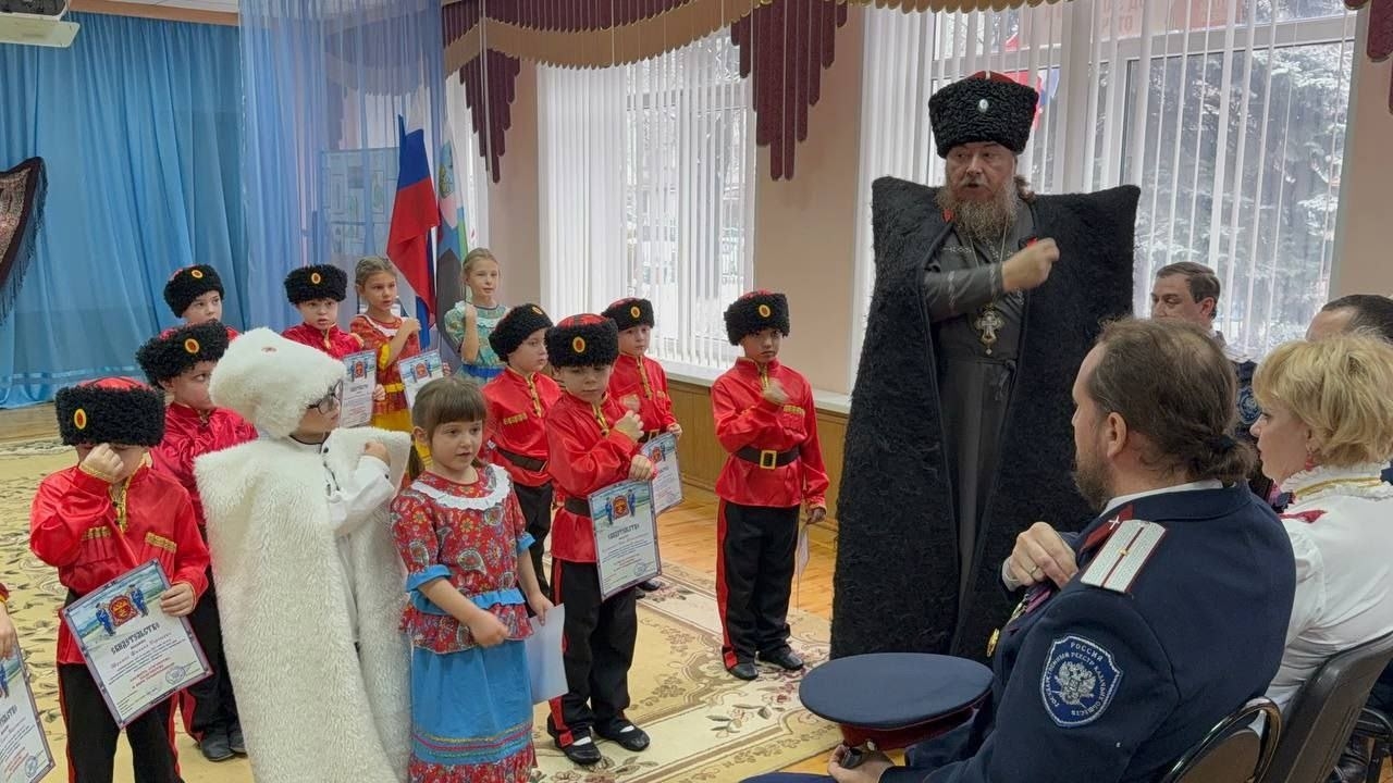 10 декабря 2025 года. В МБДОУ дс №45 г. Белгород семнадцать ещё совсем юных ребятишек в присутствии атамана, священника, казаков Белгородского городского казачьего общества, торжественно получили свидельство о принятии в казачью группу и порадовали гостей песнями, стихами и знаниями о казачьей культуре. На праздник был приглашен ансамбль фольклорных инструментов «Казачата», под руководством Джамаловой Жанны Николаевны.