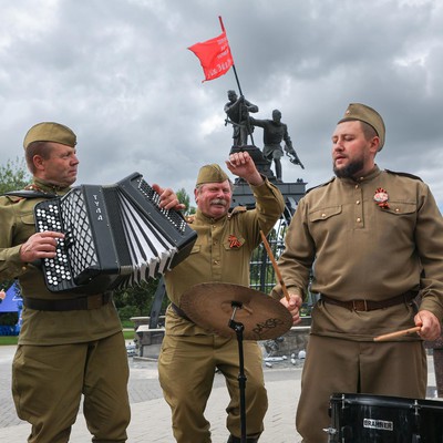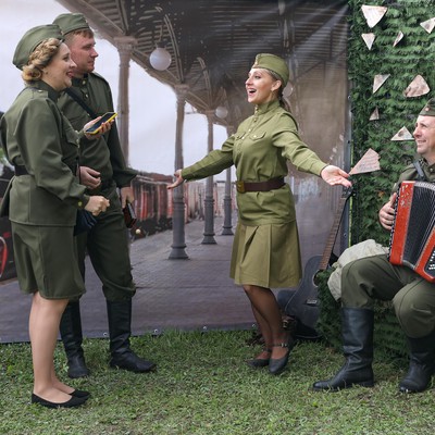 В парке Победы в Звонницы работали шесть интерактивных площадок. Здесь можно было порисовать, расписать керамические танки, поотвечать на вопросы об истории войны, сфотографироваться в тематической фотозоне, почувствовать себя на «солдатском привале» или послушать песни «музыкального мотоцикла».